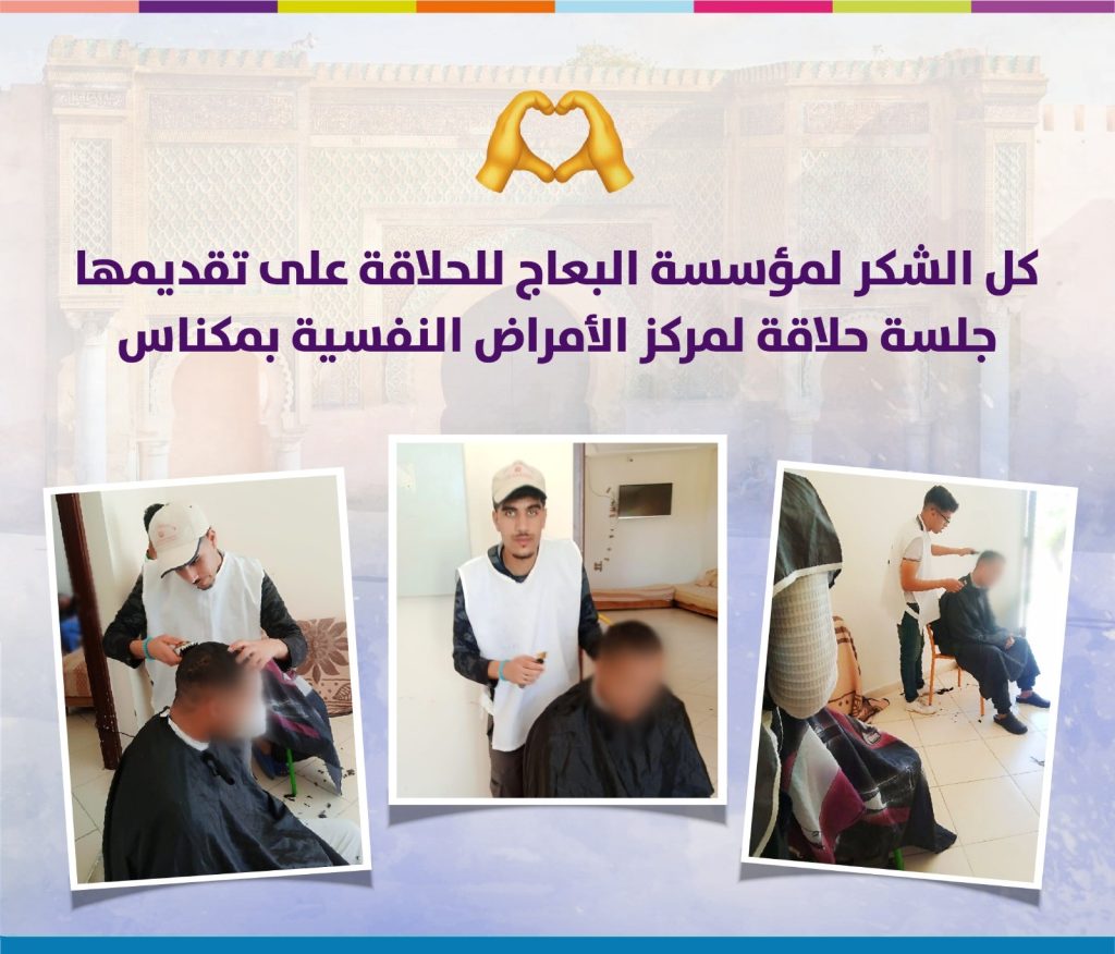 🌟✂️✨Nous sommes heureux d’avoir pu contribuer à apporter un peu de réconfort aux bénéficiaires du centre de maladies psychiatriques à Meknès et sommes reconnaissants envers l’Institut El Baaj de coiffure de la même ville d’avoir offert aux bénéficiaires du centre une séance de coupe de cheveux.