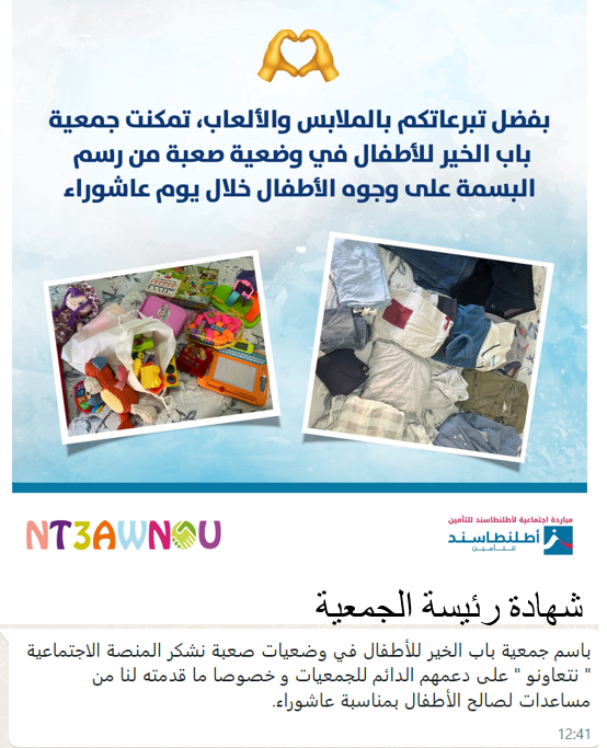 ✨ Grâce à votre dons d’habits et de jouets, l’Association a pu apporter des sourires aux enfants en situations difficiles lors de la journée d’Achoura.