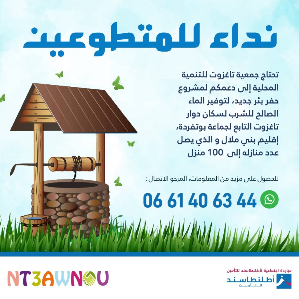 L’Association Taghzout pour le développement local cherche à mener à bien un projet de forage d’un nouveau puits au Douar de Taghzout pour fournir de l’eau potable à la population locale.