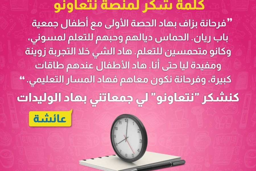 Grâce aux efforts de la plateforme Nt3awnou pour faciliter les connexions entre bénévoles et associations, nous sommes ravis d’accompagner l'Association des Minarets...