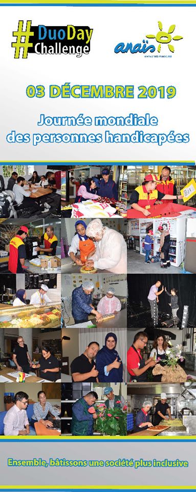 L’association Anaïs a organisé le 3 décembre 2019 une conférence de presse à l’occasion de la deuxième édition du Duo Day Challenge afin de célébrer la journée mondiale des personnes handicapées. Le Duo Day est une occasion pour les personnes en situation de handicap mental de promouvoir le développement de l’emploi des personnes en situation du handicap mental et de convaincre un employeur à leur intégration et insertion professionnelle.