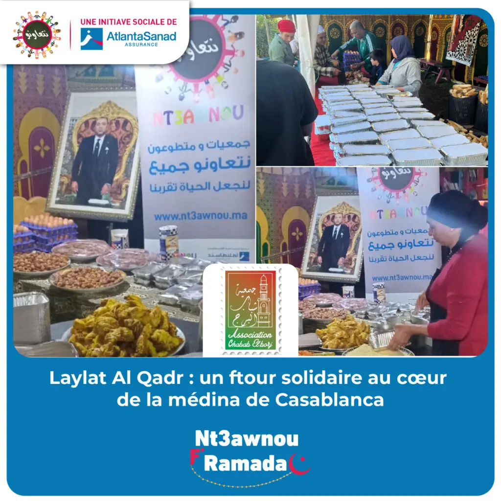 À l’occasion de Lailat Al Qadr, et dans la continuité de la dynamique solidaire portée par Nt3awnouF’ Ramadan, un bénévole a généreusement offert un ftour au profit de l’association Chabab Al Borj.