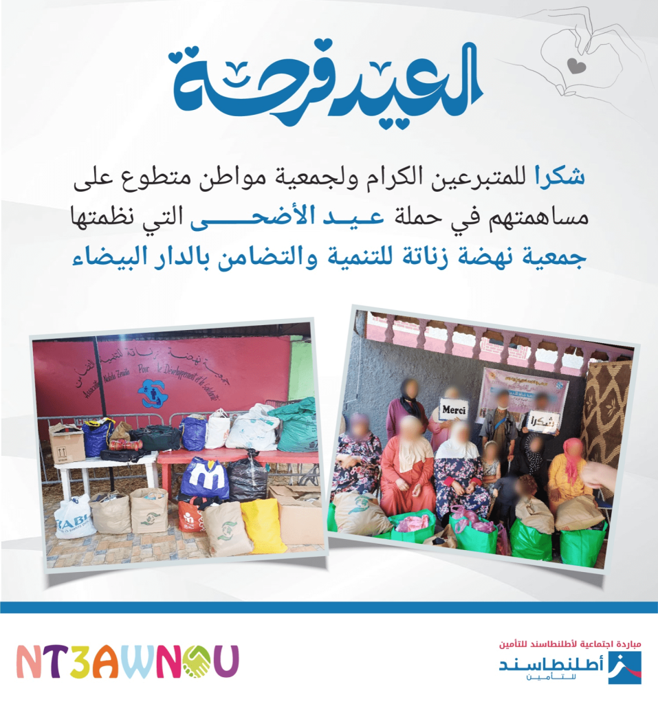 Merci à nos généreux donateurs et à l’Association Citoyen bénévole Casablanca pour leur contribution à la campagne de l’Aïd Al-Adha organisée par l’Association Nahda Zenata pour le Développement et la Solidarité –