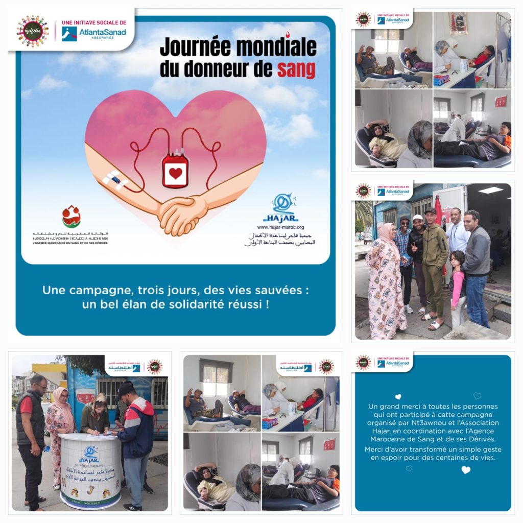 À l’occasion de la Journée mondiale du donneur de sang, la plateforme Nt3awnou et l’Association Hajar, en coordination avec l’Agence Marocaine du Sang et de ses Dérivés, ont organisé une campagne de don de sang à Casablanca du 9 au 11 juin 2025 🩸