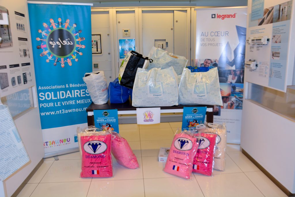 En date du 4 janvier 2020, la multinationale Legrand a remis un lot de vêtements et de couvertures d’hiver au profit de l’association Petit Ange à Casablanca. La plateforme Nt3awnou s’est approchée de la direction générale en mois de décembre pour avoir l’accord de participer à la campagne nationale d’hiver chaud. Cette opération de collecte interne a été réussie suite à l’implication de tout le personnel de la multinationale Legrand à cette initiative caritative. Ce lot de vêtements sera destiné aux habitants de la région de Boulmane.