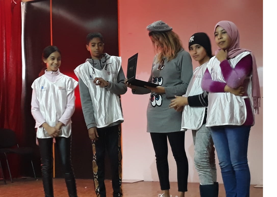 A la fin de ce spectacle, le président junior Abdelmottalib Aitbba âgé de 13 ans a remis une attestation de reconnaissance pour la plateforme Nt3awnou. Et pour clôturer l’année 2019, un buffet de fête avec un grand gâteau personnalisé contenant le logo de Nt3awou ont été offert par des deux bénévoles inscrits sur notre plateforme Nt3awnou.