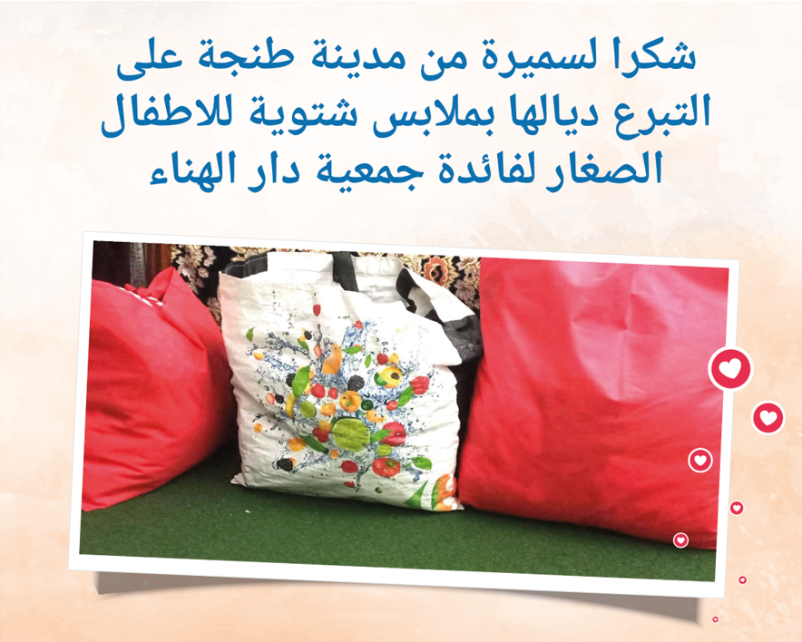 L’association Dar Al Hana pour les Handicapés a reçu lundi 18 décembre 2023 un lot de vêtements chauds pour les enfants résidents de la part de notre donatrice Mme Samira de Casablanca.