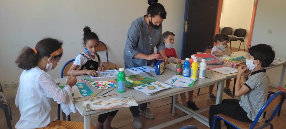 Le mardi 27 juillet 2021, une bénévole de la plateforme Nt3awnou a organisé un atelier de peinture dans la maison des jeunes de Sidi Bernoussi au profit des enfants âgés entre 5 et 10 ans. Cet atelier a permis aux enfants d’apprendre quelques bases et techniques de la peinture.