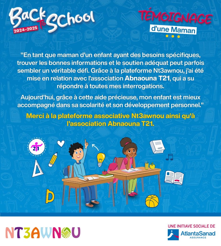 Nous avons eu le privilège d’accompagner une mère dans la démarche d’intégrer son enfant à besoins spécifiques au sein de l’association Abnaouna T21. Grâce au soutien bienveillant de cette équipe, ce jeune aura désormais la chance de s’épanouir dans un environnement adapté et chaleureux.